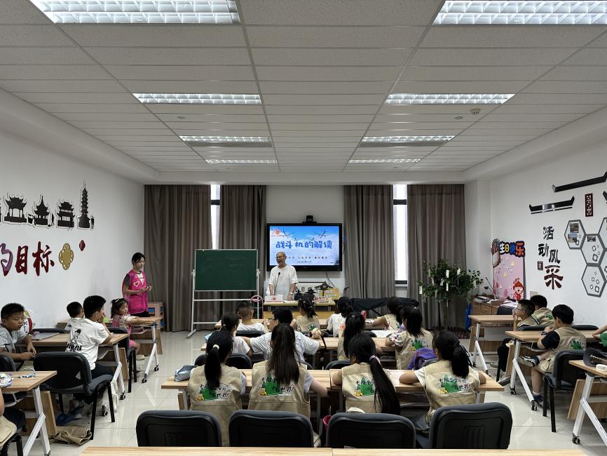 为了丰富青少年暑期生活,从小培育其关注国防、崇尚科学的精神,7月17日上午,东门社区“七阳学堂”暑托服务化身“蓝天课堂”,一场燃起青少年爱国之心的“战斗机的解读”活动火热开展,为社区青少年插上探索航空科学的翅膀。