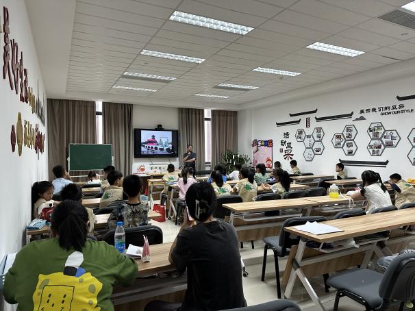 黄老师以宏阔的历史视野和深厚的理论功底,紧扣纪念抗日战争胜利80周年的时代主题,对烽火岁月进行了深刻解读。他着重阐释了在民族存亡关头淬炼出的“天下兴亡、匹夫有责”的爱国情怀、视死如归的民族气节、血战到底的英雄气概与百折不挠的必胜信念,揭示其作为中华民族精神脊梁的永恒价值。黄老师精妙地将抗战精神与当代青少年成长成才的时代命题相融合,引导孩子们深刻思考身处和平年代,如何将这份自强不息的精神血脉,转化为勤奋学习、涵养品德、勇于担当、矢志报国的具体行动?生动的讲述与深邃的启迪,引发了现场青少年的强烈共鸣,大家沉浸其中,从历史的回响中汲取着磅礴的精神力量,更加明确了自身在民族复兴伟业中的坐标与责任担当。