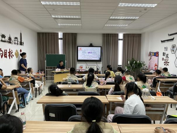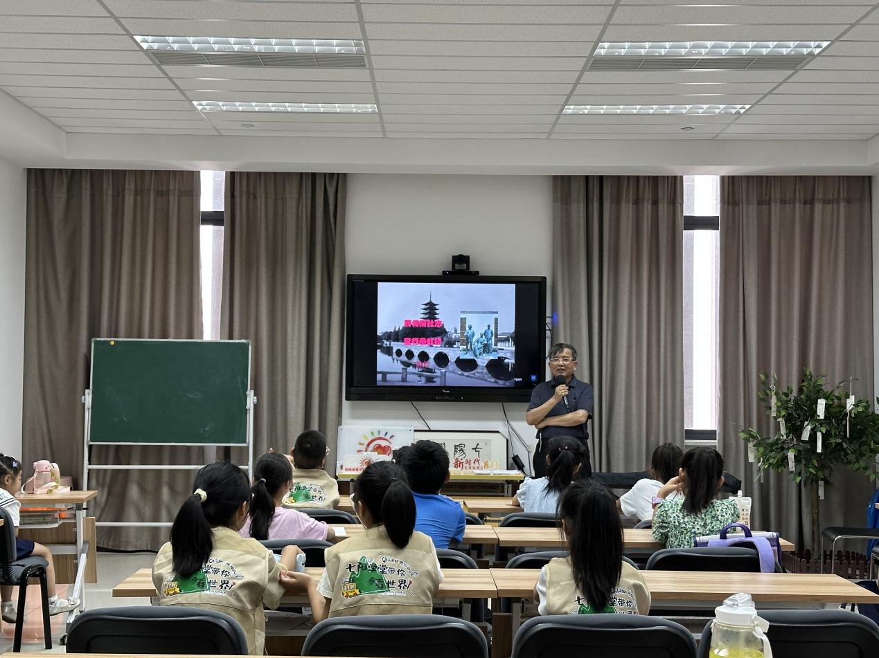 为了在青少年心中播撒文化自信的种子,筑牢乡土情怀的根基,让宝贵的本土文化遗产在新生代中焕发生机,7月21日上午,松陵街道东门社区特邀中华传统文化诵读工程吴江组委会主任、吴江区南社研究会副会长俞前老师带领暑托服务的青少年,开启了一场以“南社文化、垂虹文化”为主题的沉浸式文化探索之旅。