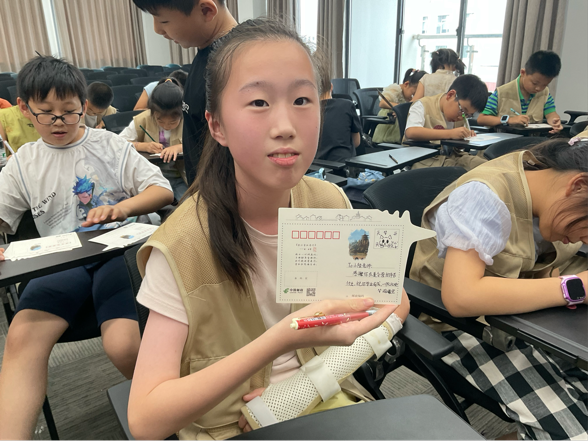 贯穿暑托服务全程的“我超棒”积分在此刻绽放价值。小唐同学用种子盲盒延续盆栽接力;乐乐紧握舞龙徽章“我一定努力练字舞龙!”。东门社区“童年回忆”小卖部柜台前踮起的脚尖和发亮的瞳孔,是今夏最生动的勋章。