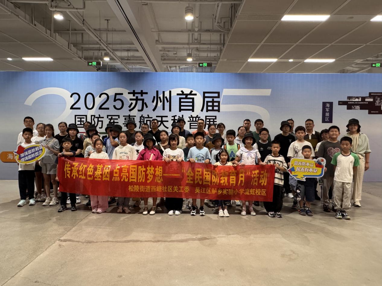为深化“全民国防教育月”活动,增强青少年的国防观念和爱国情怀,9月30日上午,松陵街道西塘社区携手吴江区鲈乡实验小学流虹校区,组织了一场别开生面的社会实践活动,共同参观“2025年苏州首届国防军事航天科普展”。