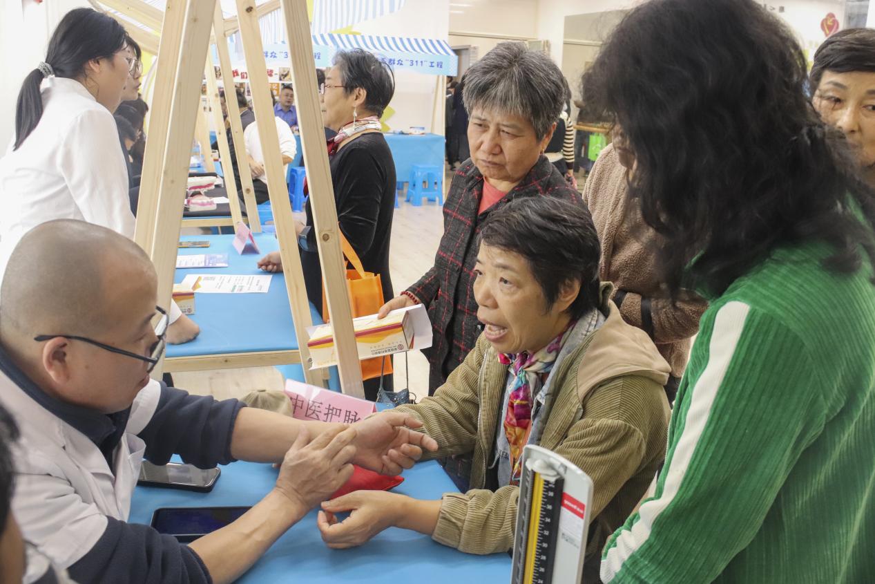 幸福“河”伙人成员单位打造的便民服务摊位前人头攒动、暖意融融。金融防诈、禁毒宣传、文明养犬等科普摊位上,工作人员通过案例讲解、互动问答普及实用知识,为居民生活筑牢“安全防线”;公益理发、免费磨刀、洗鞋等便民服务接地气、解民忧,用“小服务”传递“大温暖”,省去了居民奔波之苦;血压血糖测量、中医把脉等健康服务贴心周到,为老年群体提供了便捷的健康监测渠道,让关怀触手可及。多元服务整合资源、精准对接需求,让居民在“家门口”就能享受到一站式便利,更让法理情融合的理念浸润人心。
